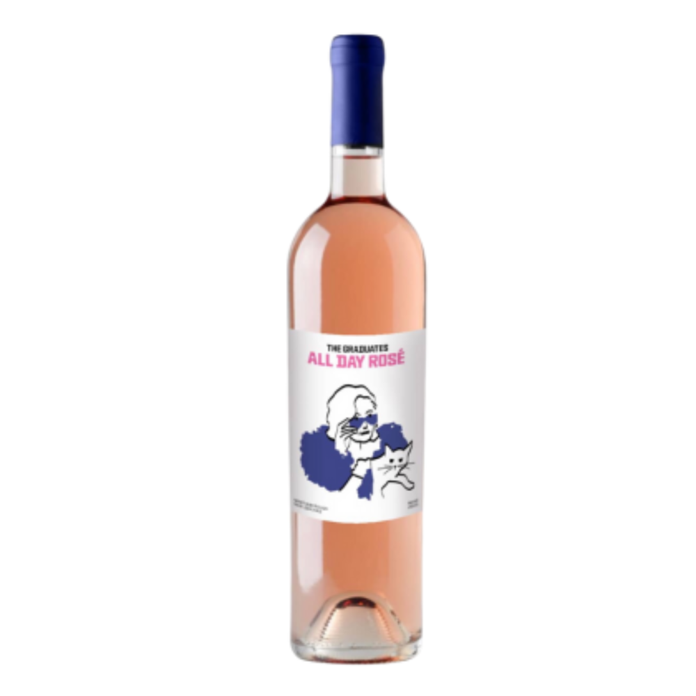 The "All Day" Rosé from The Graduates Wines is a dry, elegant rosé with a crisp finish and notes of red berries and citrus balanced by minerality. It's made from handpicked Pinot Noir grapes grown in Martinborough, New Zealand, and is described as a perfect companion for leisurely afternoons and sunsets according to The Graduates Wines.
