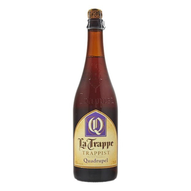 A unique Trappist beer that is even put to rest sorted by year in the cellars of the abbey for further fermentation. The strongest beer of La Trappe with a beautiful amber colour. The warm taste is full and well-balanced. A little bit sweet and pleasantly bitter. La Trappe Quadruple is also fermented in oak barrels.