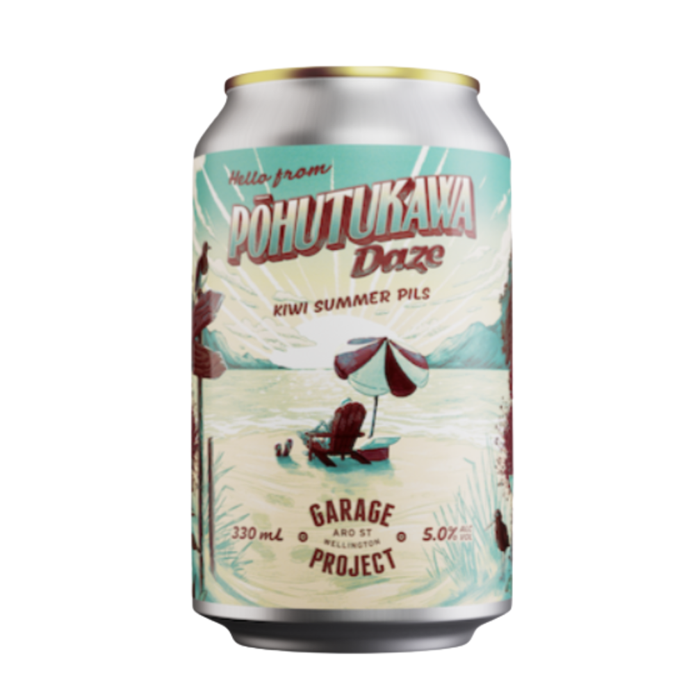 Kiwi summer vibes. Pohutakawa Daze, crystal clear, crisp New Zealand Pilsner, brewed with NZ Cascade, Riwaka and Nelson Sauvin. Ultra clean with the perfect balance of sweet malt and snappy bitterness finished with bright citrus, white grape and passionfruit notes. Bring on the sunshine.