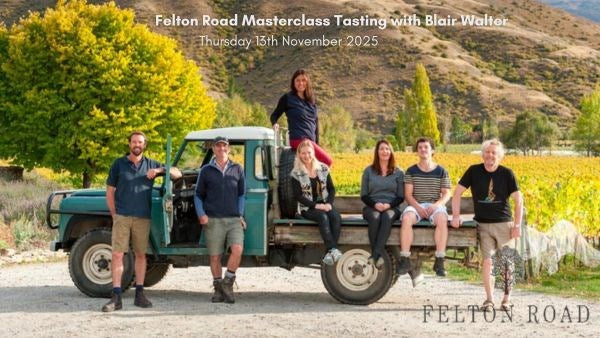 This guided tasting will explore a curated selection from their Bannockburn estate, offering insight into the region’s unique terroir and Felton Road’s philosophy of minimal intervention. Whether you're a longtime admirer or discovering their wines for the first time, this is a rare opportunity to savor the depth and nuance that make Felton Road a benchmark in New Zealand winemaking.